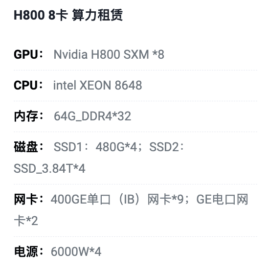 深圳H800八卡算力租用价格